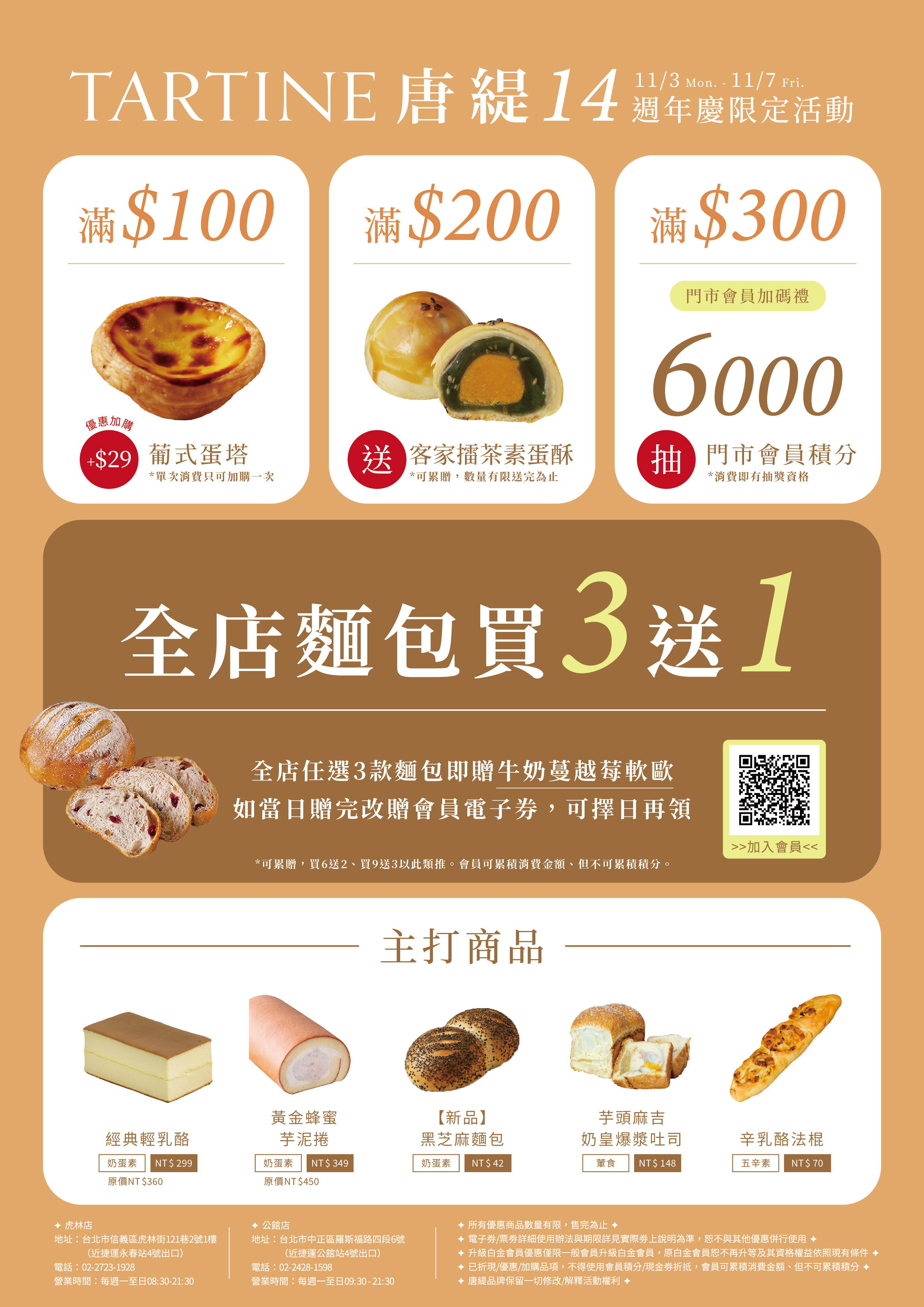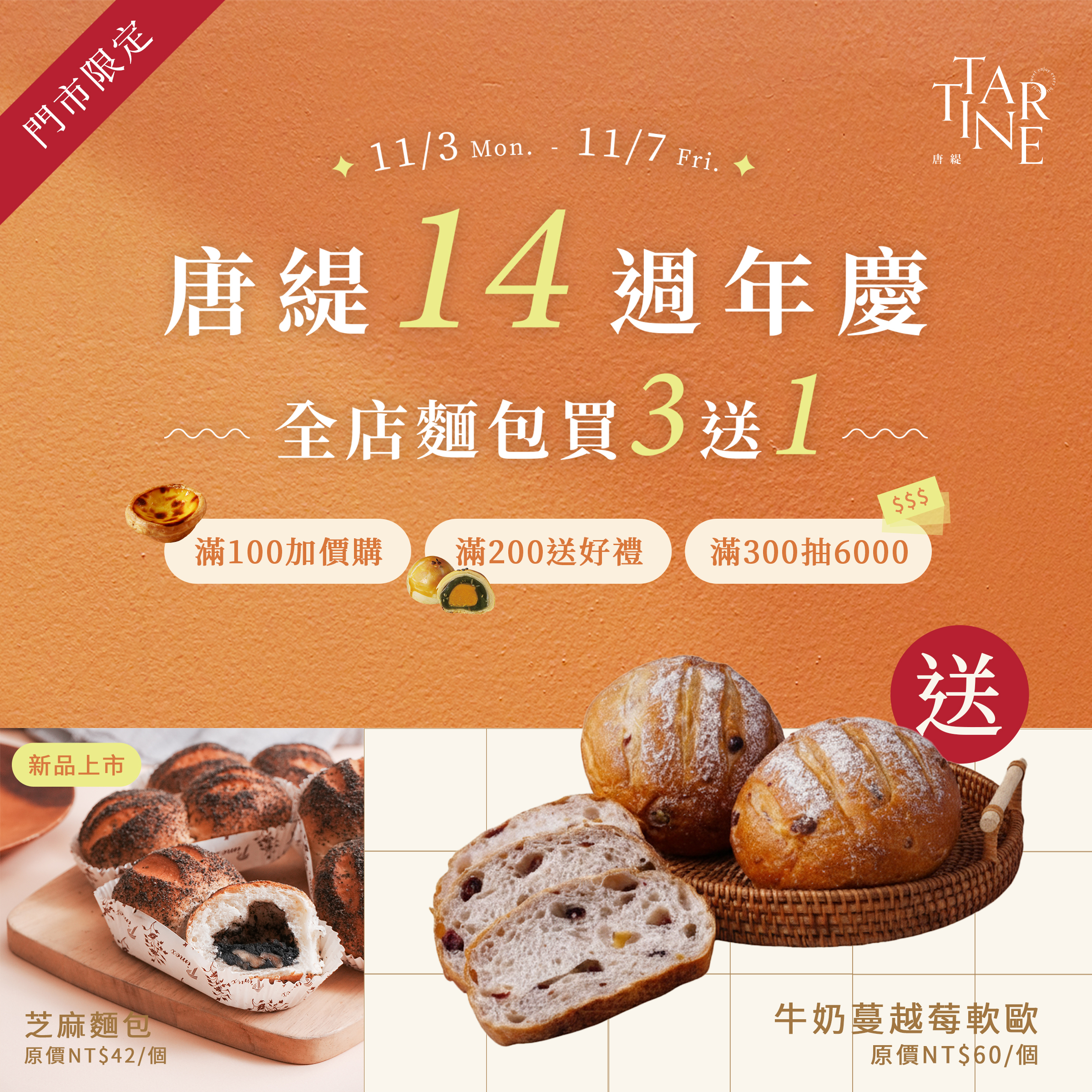 11/3(一)-11/7(五) 門市麵包 #買3送1 🎉