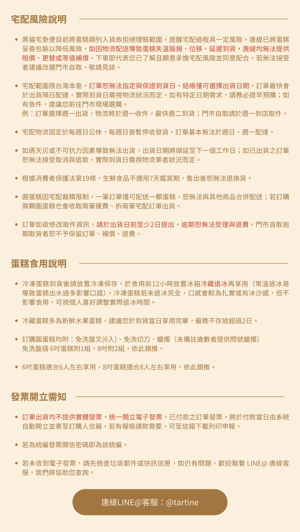 除國定假日與例假日外,可透過唐緹官方LINE@聯絡我們,非服務時間請留下您的訂購大名、訂購電話,客服將於上班時間依留言序為您服務!