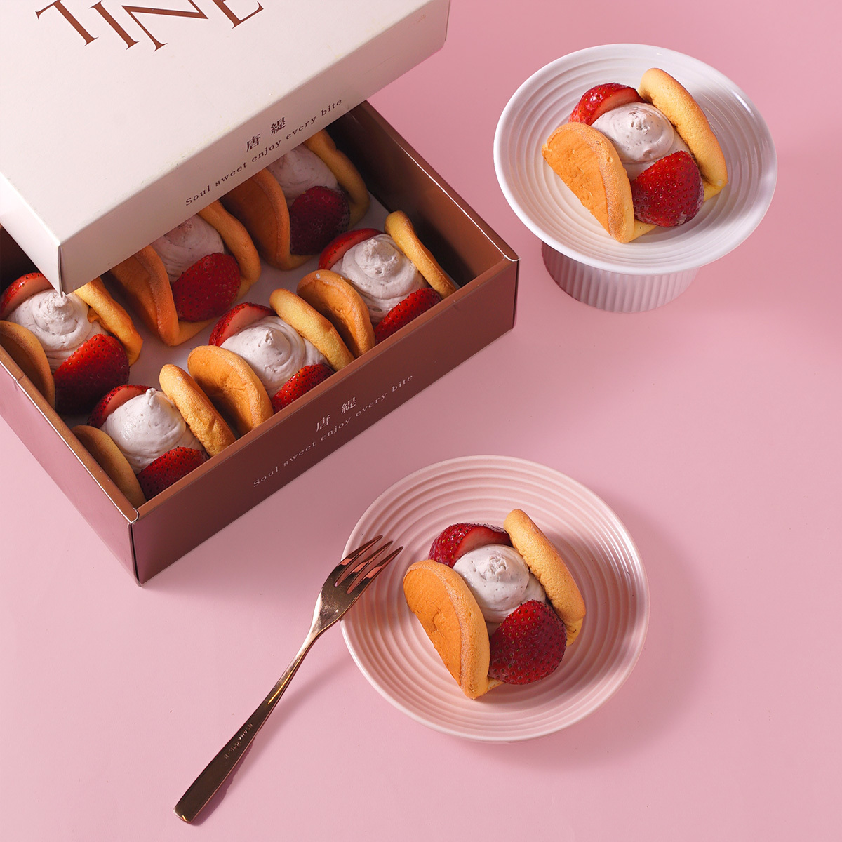您絕對沒想過芋頭與草莓會這麼適合~開盒就有滿滿草莓香氣的半月燒,包進一定要冰冰吃的超綿軟大甲芋頭泥,吃過愛上它的人真不少啊!