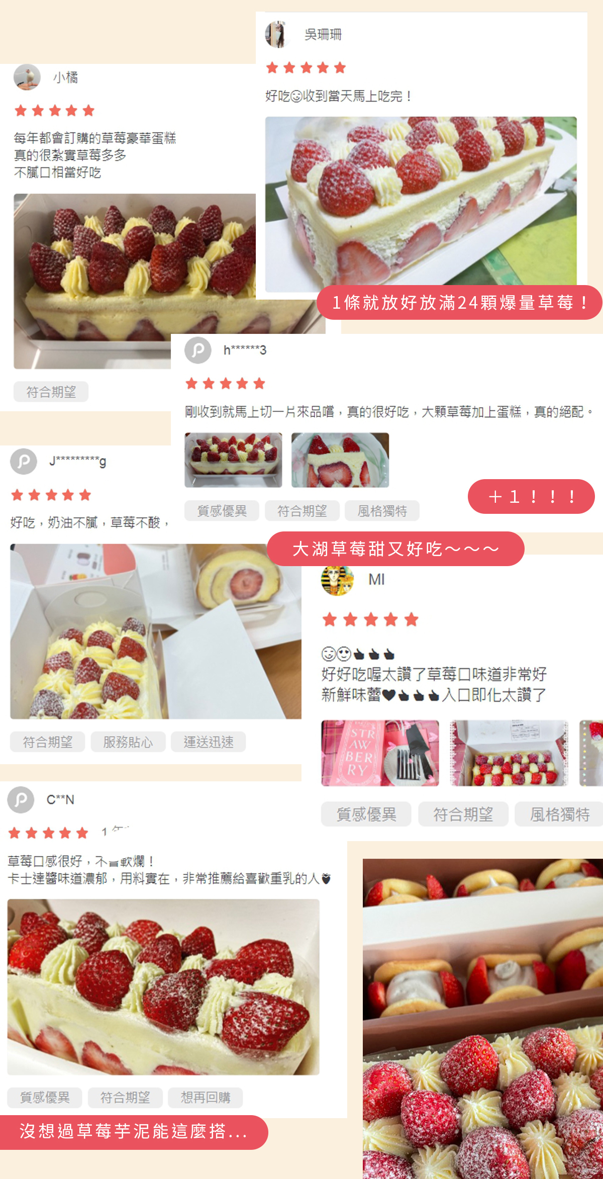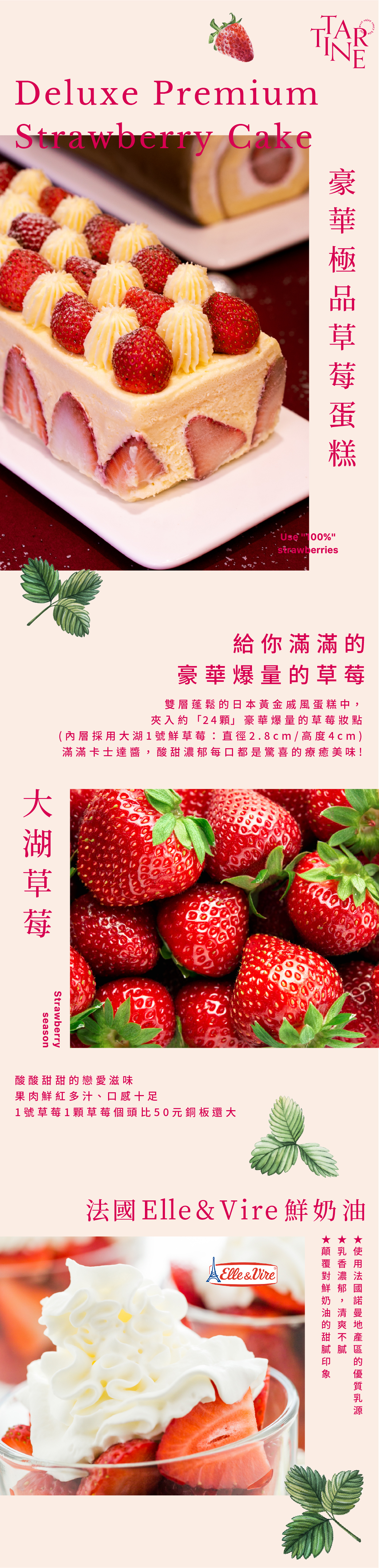 24顆豪華版爆量的草莓!給你滿滿的幸福,一條19x8x8公分,滿滿香醇清爽的奶油內餡,中和草莓天然的酸甜味,堆疊出更高的香氣層次!