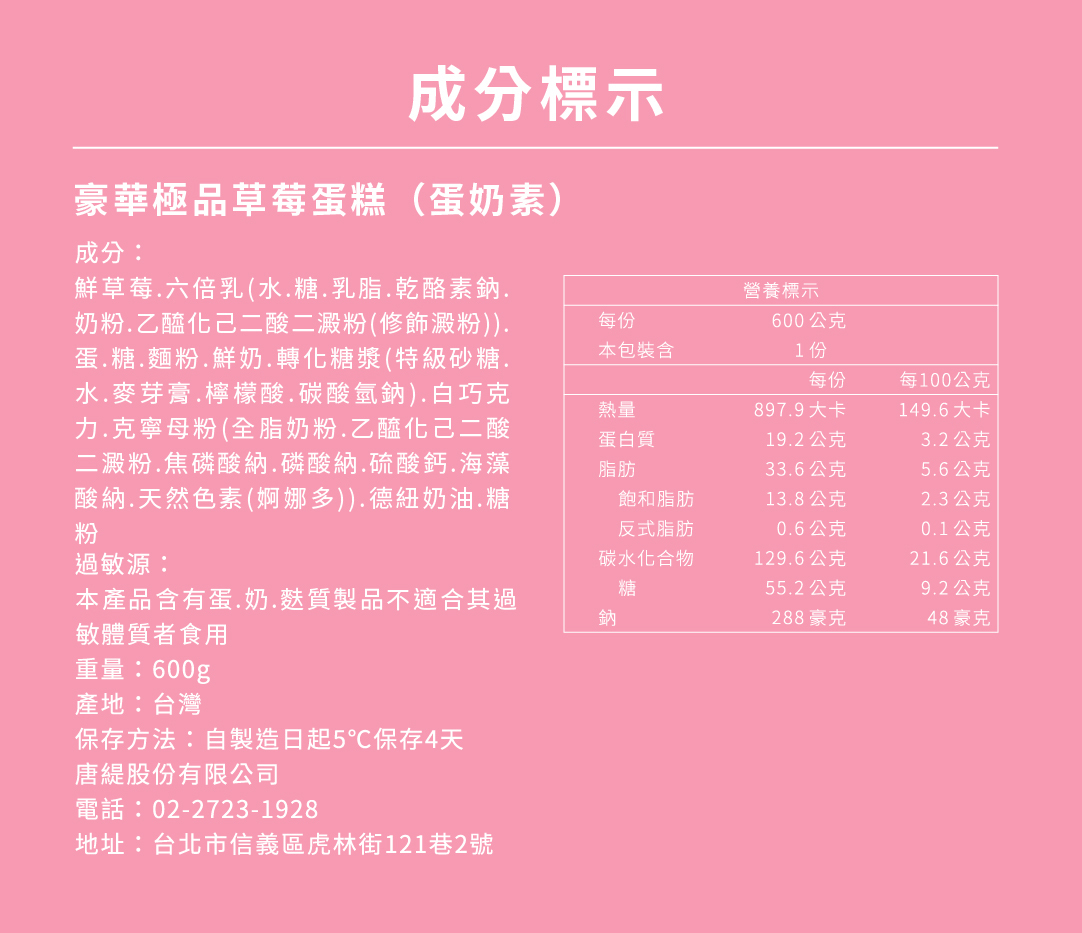 *製造日起保存期限為四天,建議1-2日內享用為最佳賞味期限
