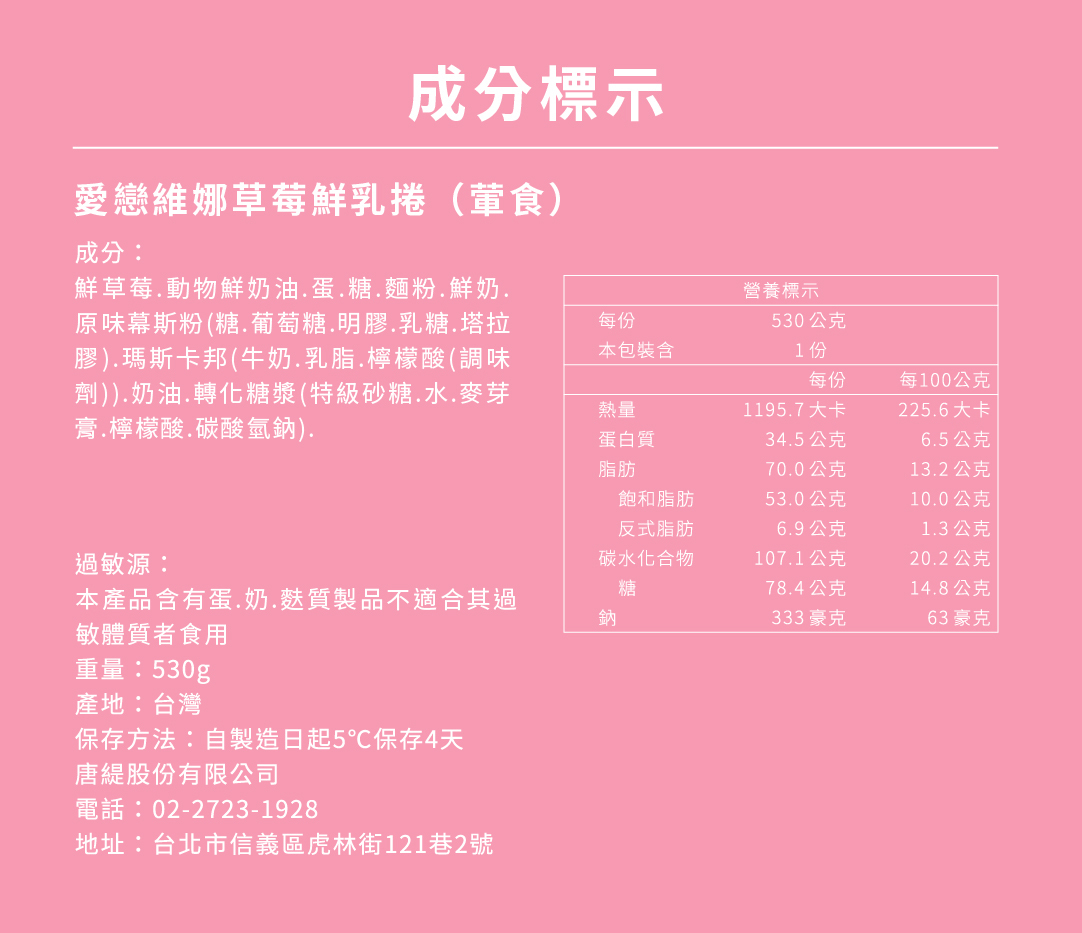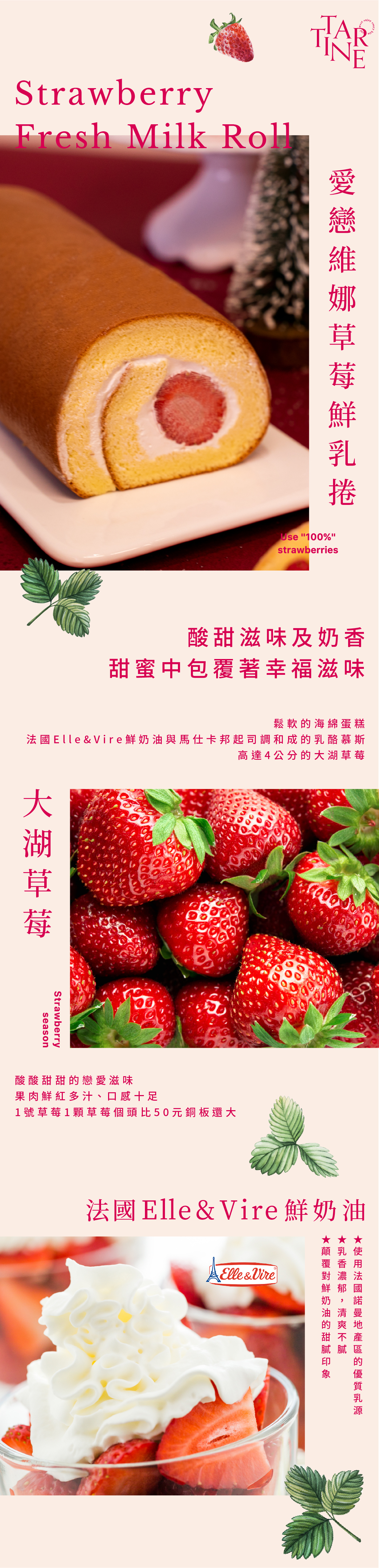 用綿軟的戚風蛋糕,把草莓的美好捲進你心裡~香醇清爽的愛樂薇奶油內餡,中和草莓天然的酸甜味,堆疊出更高的香氣層次!