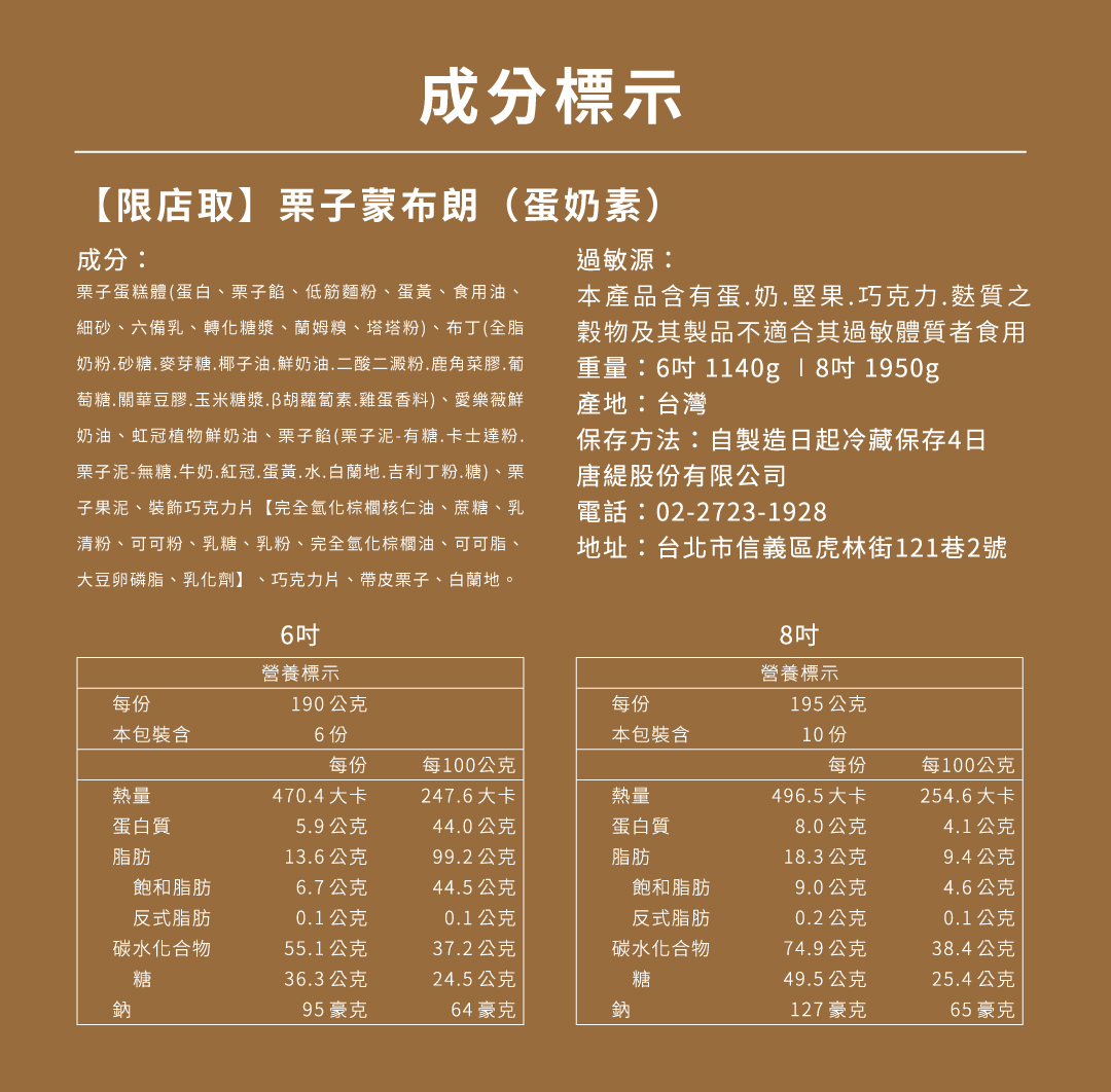添加少許白蘭地酒,風味更綻放,切開是栗子戚風蛋糕體夾栗子丁與Q嫩布丁!