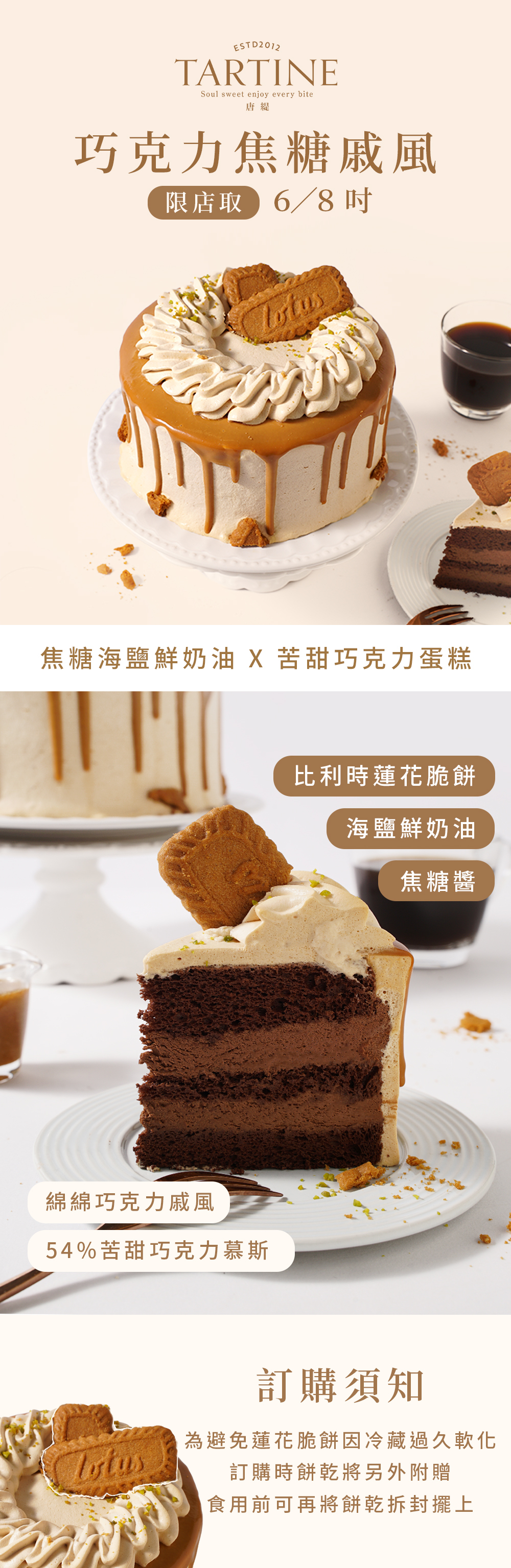 ★訂購須知:為避免蛋糕上的比利時蓮花脆餅因冷藏過久軟化,訂購蛋糕時脆餅將額外附贈,可再於食用前拆封擺上蛋糕