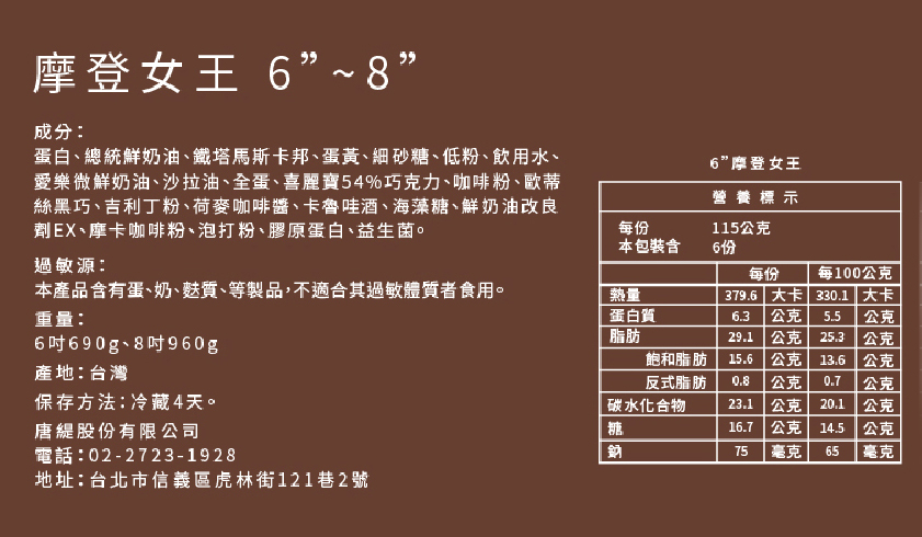 -注意:商品為冷凍宅配,請於食用前12小時放置冰箱"冷藏退冰",退冰過久或常溫退冰都易造成蛋糕出水過多影響口感,退冰後也請於當日食用完畢風味最佳!