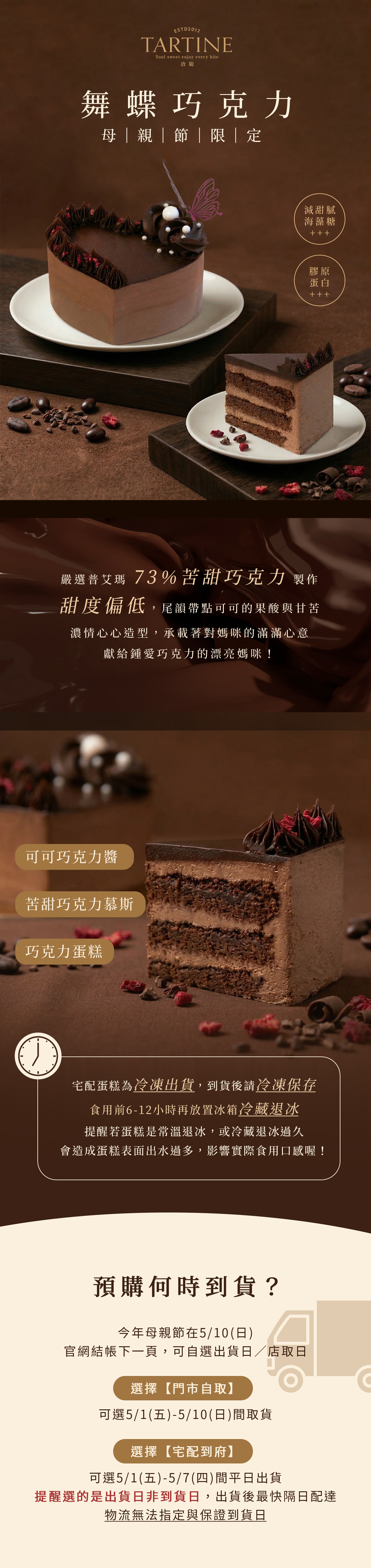 這是大人的味道!73% 普艾瑪巧克力與嘉利寶苦甜巧克力雙重夾擊,尾韻帶點可可的果酸與甘苦,完全不膩口,配杯黑咖啡簡直是天堂。美美心型外觀,讓媽咪拍照打卡一定好心情~