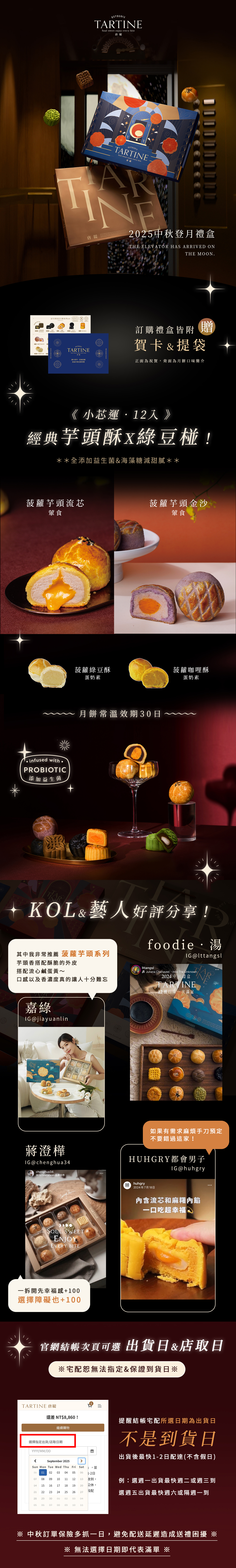 【注意】每款月餅皆有獨立封膜包裝,因外皮酥脆,運送過程中多有些微碎裂風險,請接受此點再行訂購