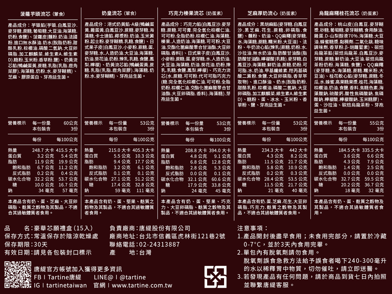 -蛋奶素|巧克力榛果流芯、芝麻厚奶流芯、烏龍桂花麻糬流芯