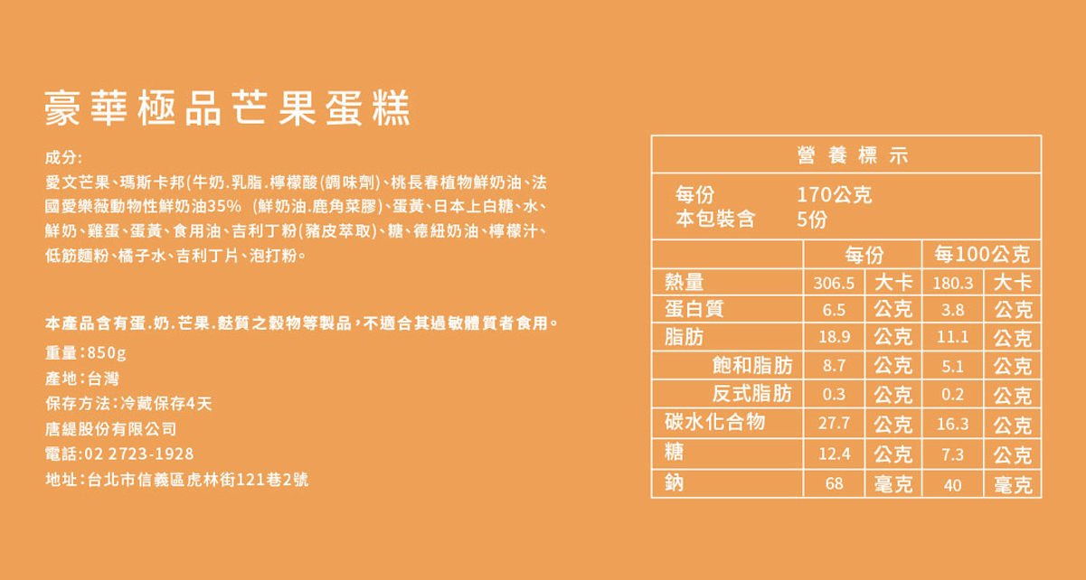 嚴選台灣愛文芒果,整條約使用了兩顆半的新鮮芒果,柔軟的戚風蛋糕中,夾入新鮮芒果與滑順不膩口的Elle&Vire純天然鮮奶油,品嚐專屬於夏日的美好滋味